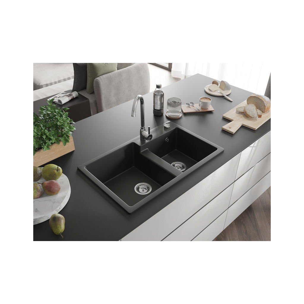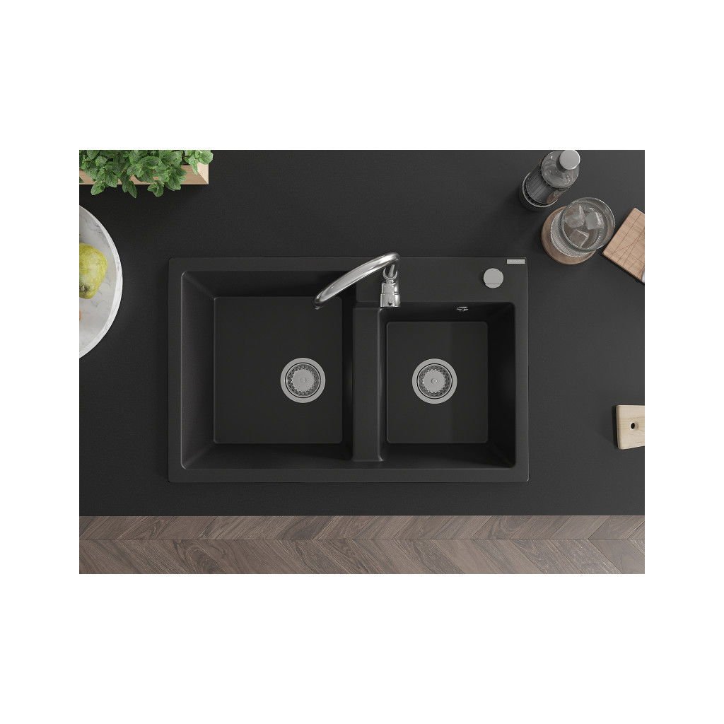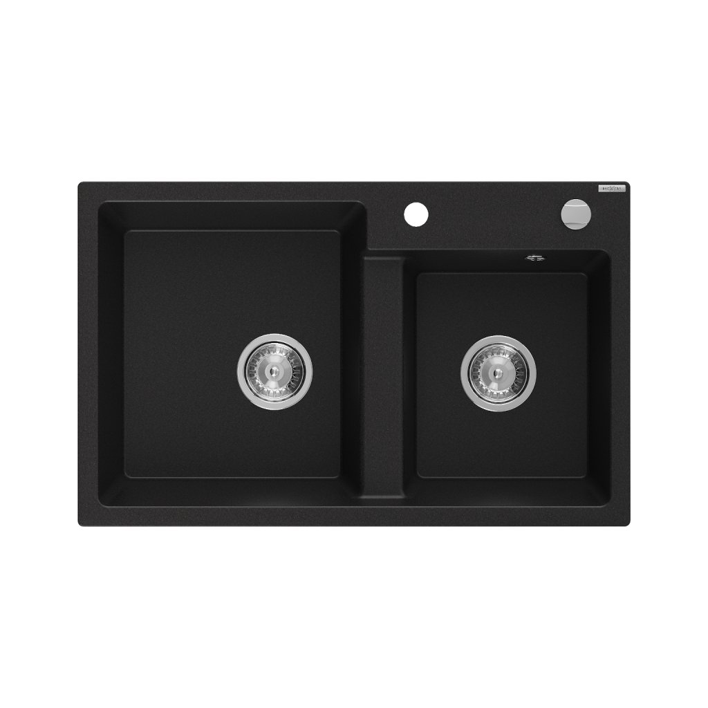 Mexen Tomas, granitový dřez 800x500x190 mm, 2-komorový, černá, 6516802000-77