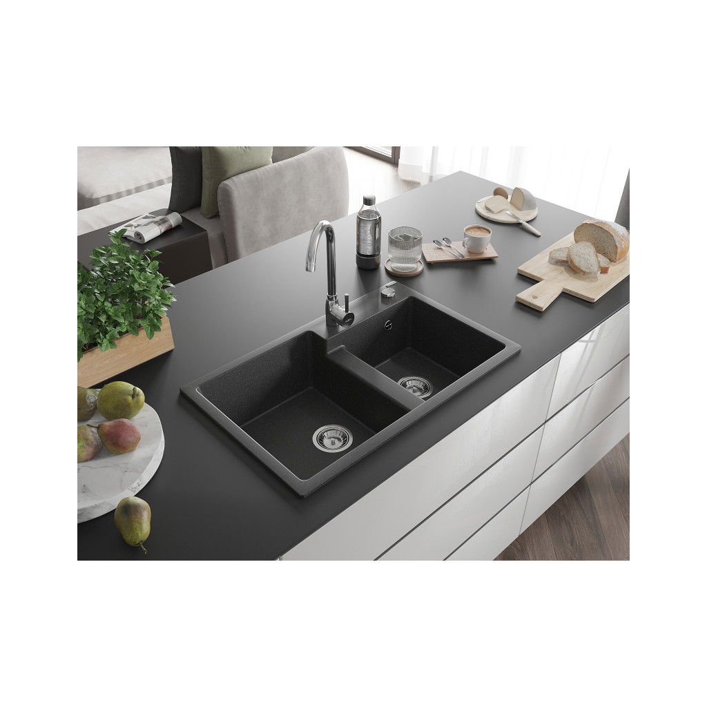 Mexen Tomas, granitový dřez 800x500x190 mm, 2-komorový, černá skvrnitá, 6516802000-76