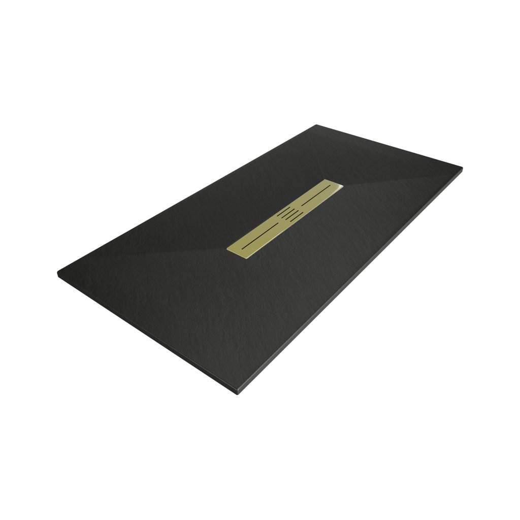 Mexen Toro, SMC obdélníková sprchová vanička 170 x 70 cm, černá, zlatá krytka, 43707017-G