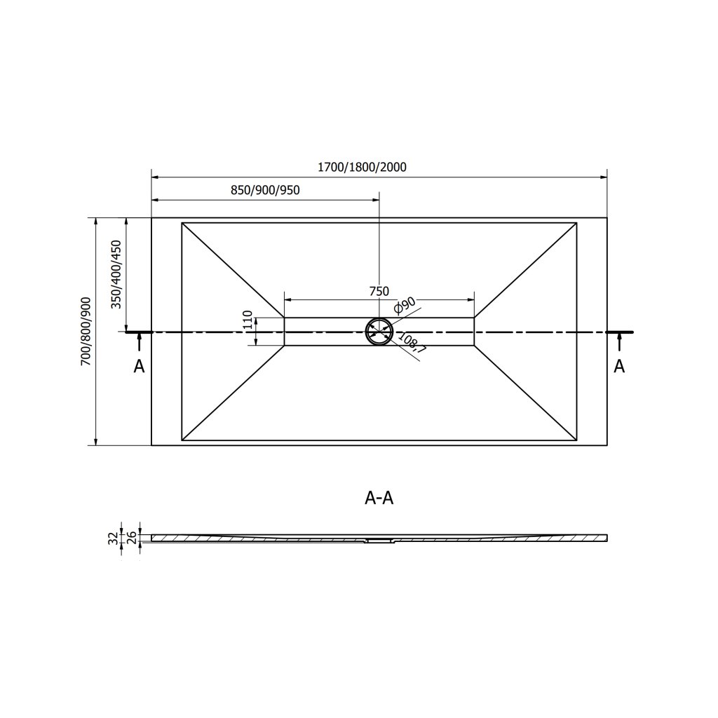 - Typ: ultra nízká sprchová vanička z tvrzeného SMC