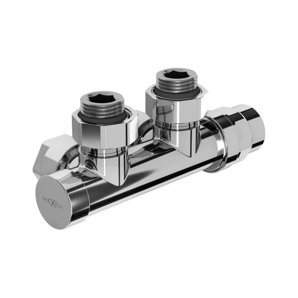 Mexen Uni-term, úhlový ventil pro radiátor s roztečí 50mm, oboustranný, chromová, W907-000-01