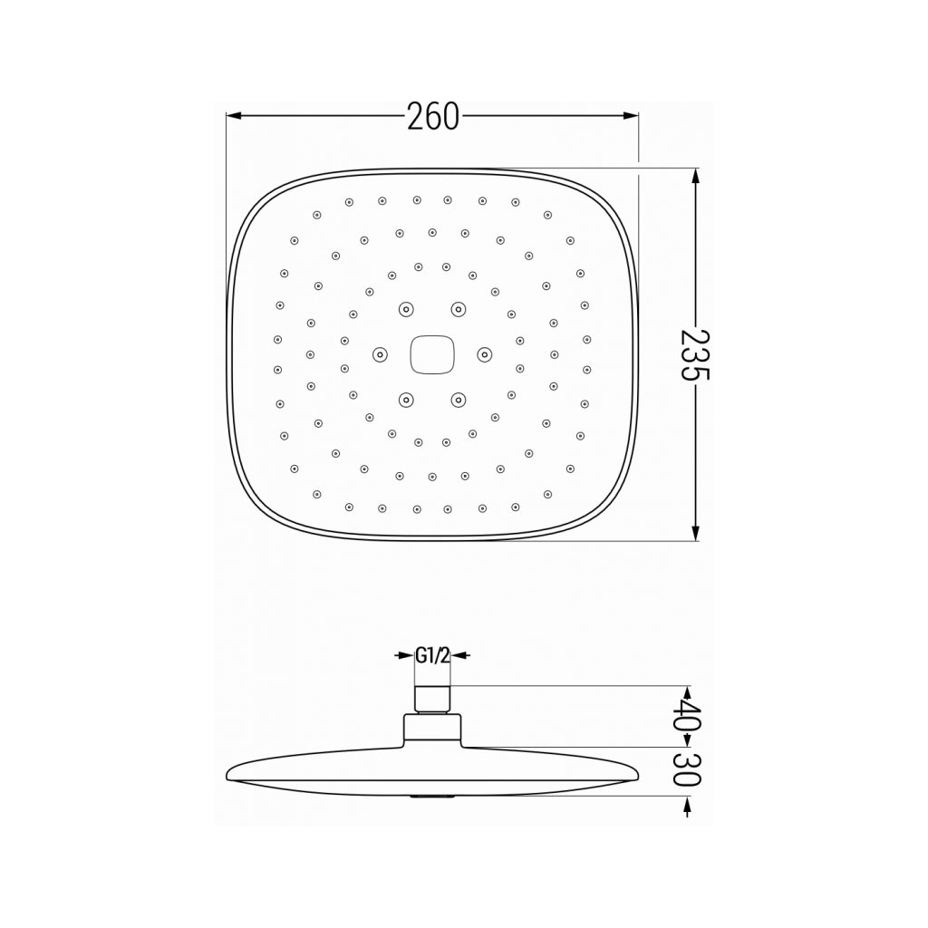 - Dešťová sprcha má pryžové trysky, které zabraňují usazování vodního kamene