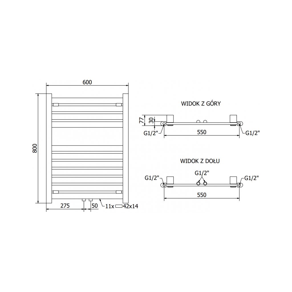 Mexen Uran, elektrické topné těleso 800x600 mm + topná tyč 300 W, chromová, W105-0800-600-2300-01