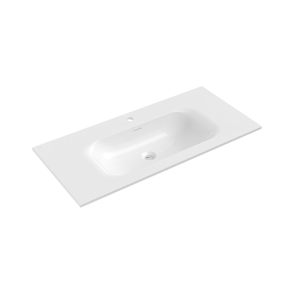 Technické údaje: Rozměry: 101x46,5x16,5 cm Hloubka: 12 cm Typ: Zapuštění do desky Barva: Bílý lesk Materiál: Konglomerát Přepadový otvor: Ano Otvor na baterii: AnoDoplňkové parametry