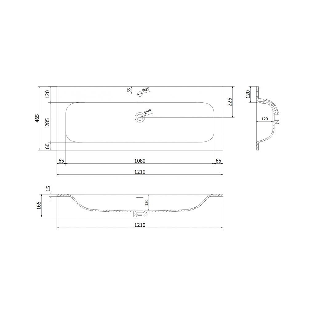 Technické údaje: Rozměry: 121x46,5x16,5 cm Hloubka: 12 cm Typ: Zapuštění do pracovní desky Barva: černá matná Materiál: konglomerát Přepadový otvor: Ano Otvor na baterii: AnoDoplňkové parametry