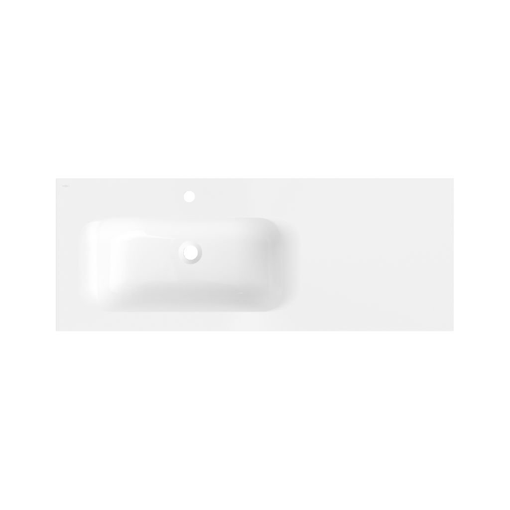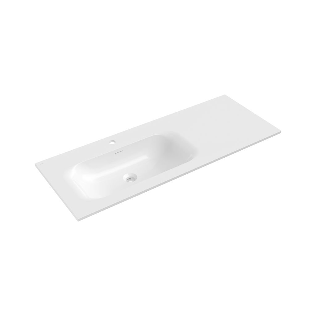 Technické údaje: Rozměry: 121x46,5x16,5 cm Hloubka: 12 cm Typ: Zapuštěný v pracovní desce, levá strana Barva: Bílý lesk Materiál: Konglomerát Přepadový otvor: Ano Otvor pro baterii: AnoDoplňkové parametry