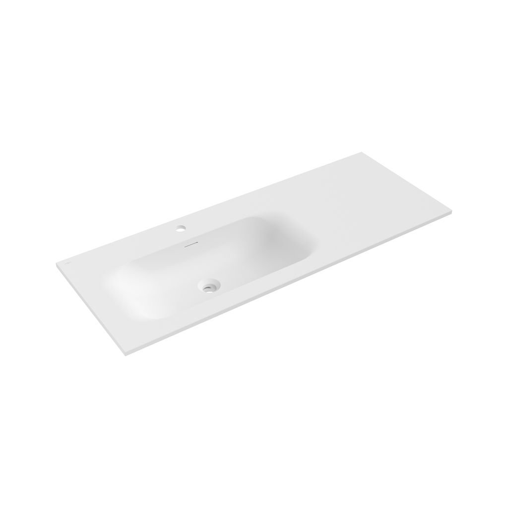 Technické údaje: Rozměry: 121x46,5x16,5 cm Hloubka: 12 cm Typ: Zapuštěný v pracovní desce, levá strana Barva: bílá matná Materiál: konglomerát Přepadový otvor: Ano Otvor na baterii: AnoDoplňkové parametry
