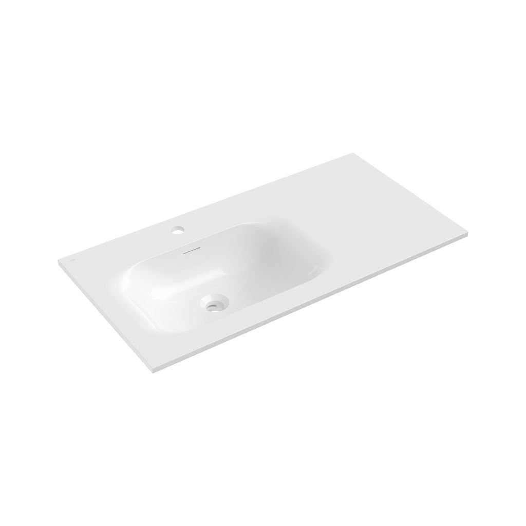 Technické údaje: Rozměry: 91x46,5x16,5 cm Hloubka: 12 cm Typ: Zapuštěný v pracovní desce, levá strana Barva: Bílý lesk Materiál: Konglomerát Přepadový otvor: Ano Otvor pro baterii: AnoDoplňkové parametry