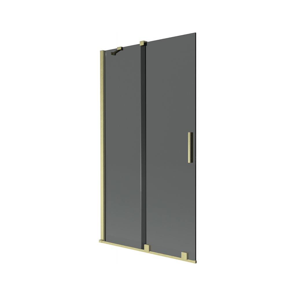 Mexen Velar, 2-křídlová posuvná vanová zástěna 100 x 150 cm, 8mm šedé sklo, zlatá matná, 896-100-000-41-55