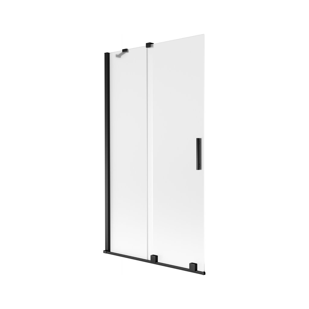 Mexen Velar, 2-křídlová posuvná vanová zástěna 100 x 150 cm, 8mm sklo námraza, černá matná, 896-100-000-31-70