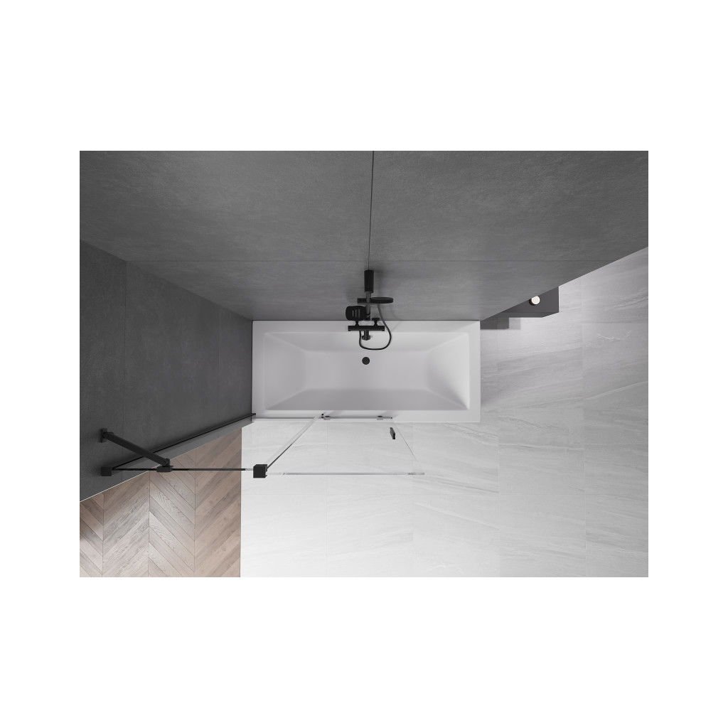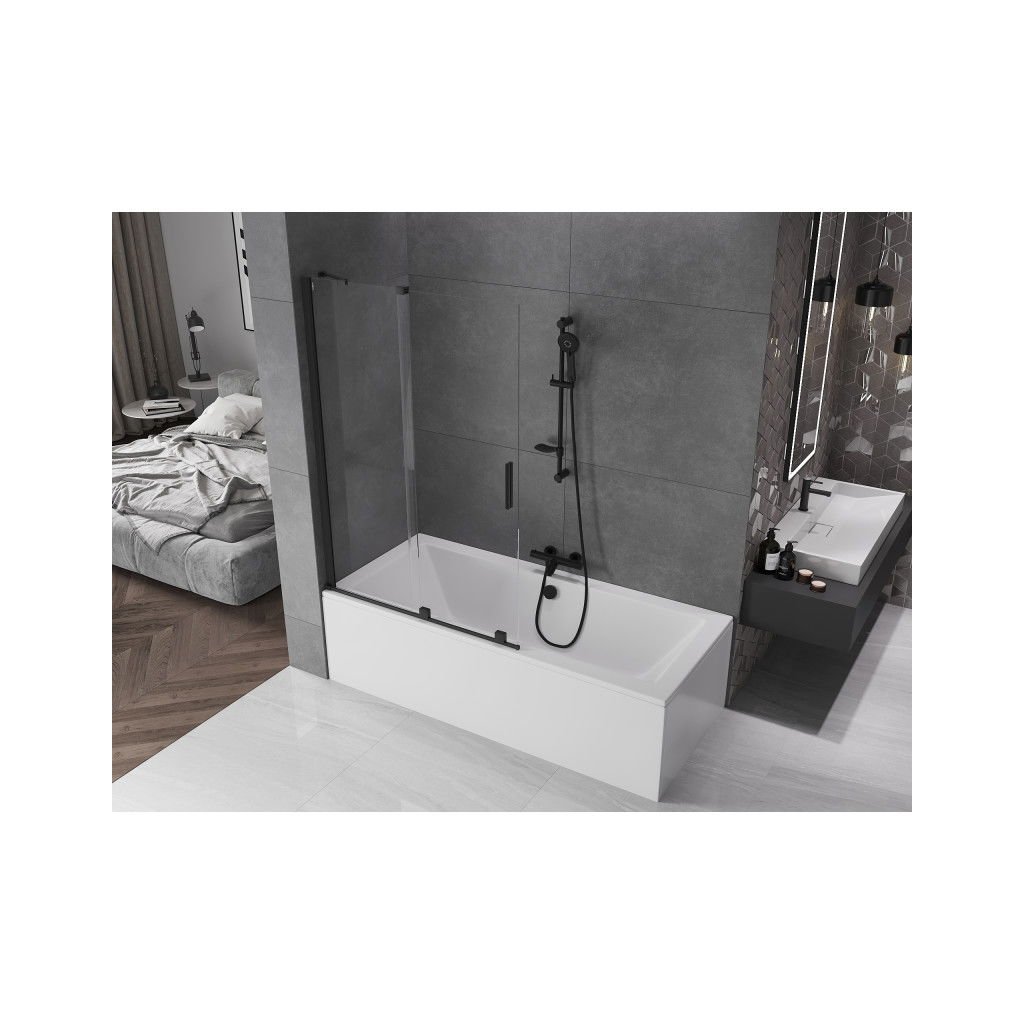 Mexen Velar, 2-křídlová posuvná vanová zástěna 110 x 150 cm, 8mm čiré sklo, černá matná, 896-110-000-01-70