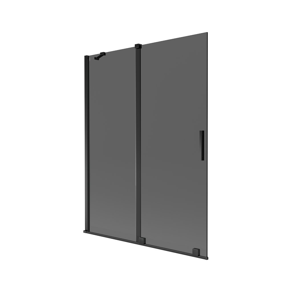 Mexen Velar, 2-křídlová posuvná vanová zástěna 130 x 150 cm, 8mm šedé sklo, černá matná, 896-130-000-41-70