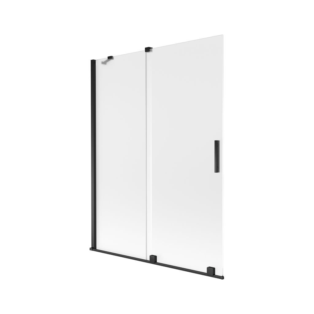 Mexen Velar, 2-křídlová posuvná vanová zástěna 130 x 150 cm, 8mm sklo námraza, černá matná, 896-130-000-31-70