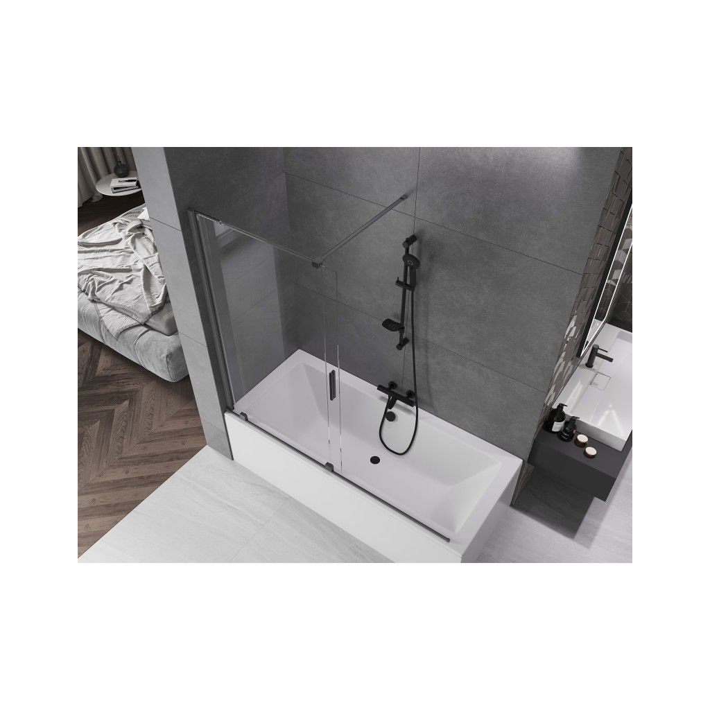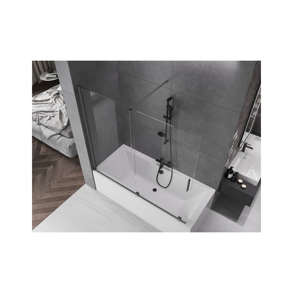 Mexen Velar, 2-křídlová posuvná vanová zástěna 170 x 150 cm, 8mm čiré sklo, grafitový matný profil, 896-170-000-01-66