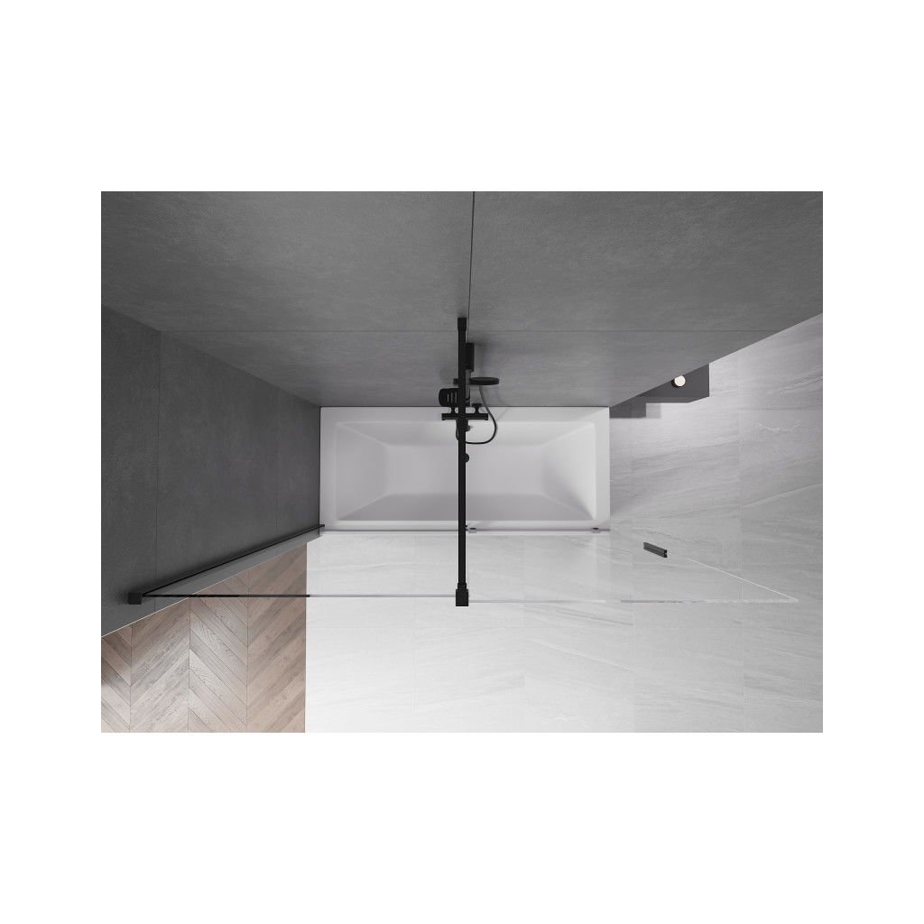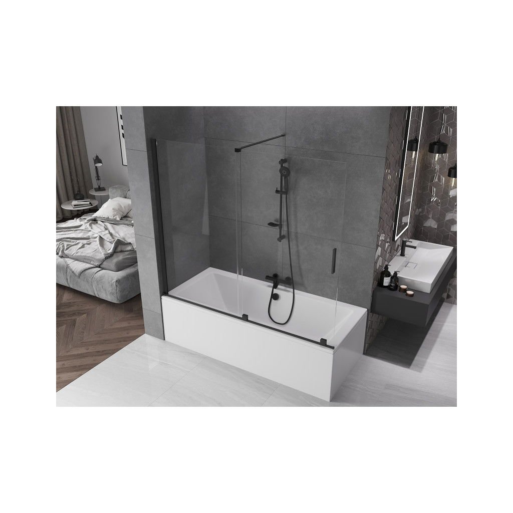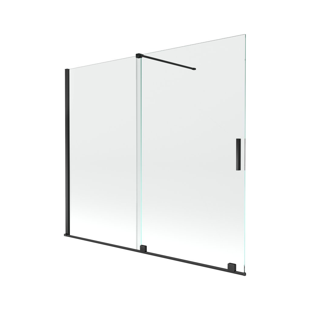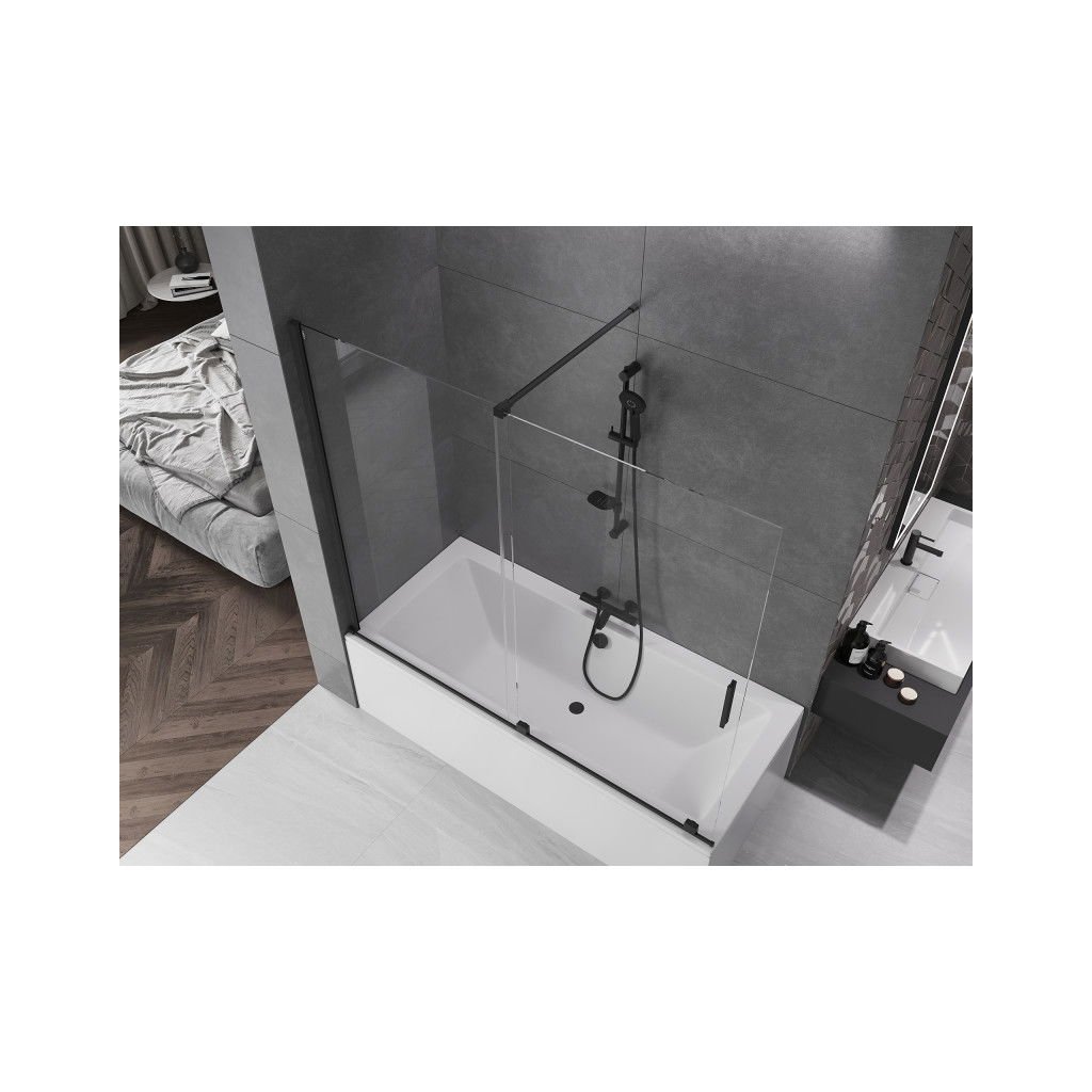 Mexen Velar, 2-křídlová posuvná vanová zástěna 180 x 150 cm, 8mm čiré sklo, černá matná, 896-180-000-01-70