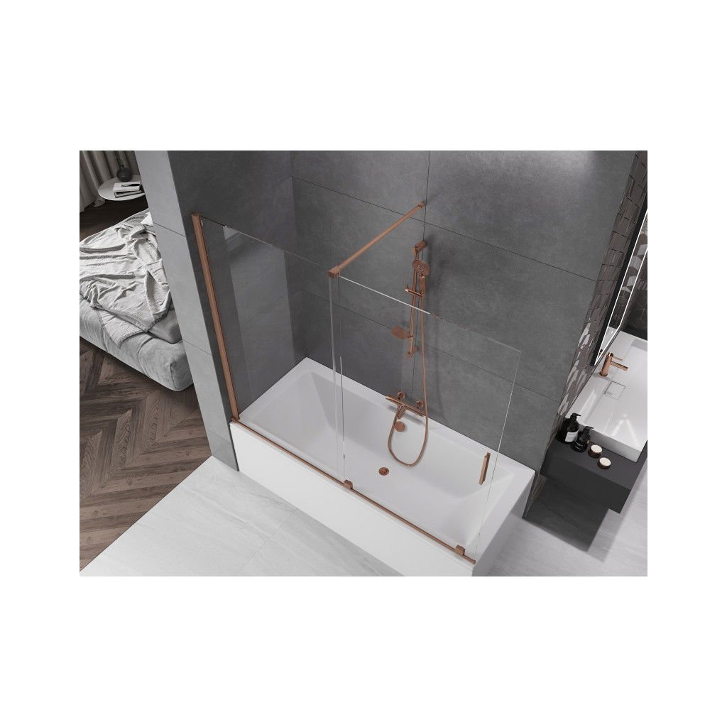 Mexen Velar, 2-křídlová posuvná vanová zástěna 180 x 150 cm, 8mm čiré sklo, měděná matná, 896-180-000-01-65