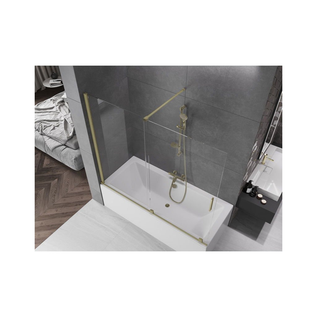 Mexen Velar, 2-křídlová posuvná vanová zástěna 180 x 150 cm, 8mm čiré sklo, zlatý matný profil, 896-180-000-01-55