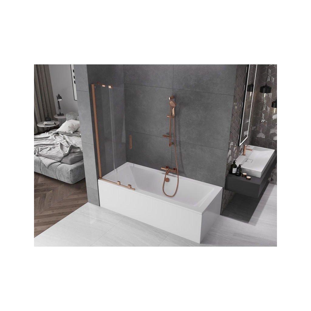 Mexen Velar, 2-křídlová posuvná vanová zástěna 75 x 150 cm, 8mm čiré sklo, měděná matná, 896-075-000-01-65