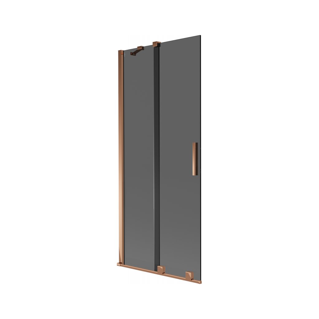 Mexen Velar, 2-křídlová posuvná vanová zástěna 85 x 150 cm, 8mm šedé sklo, růžové zlato, 896-085-000-41-60