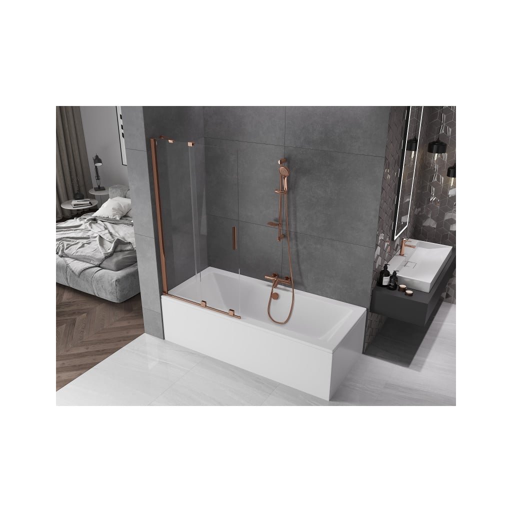 Mexen Velar, 2-křídlová posuvná vanová zástěna 95 x 150 cm, 8mm čiré sklo, růžové zlato, 896-095-000-01-60