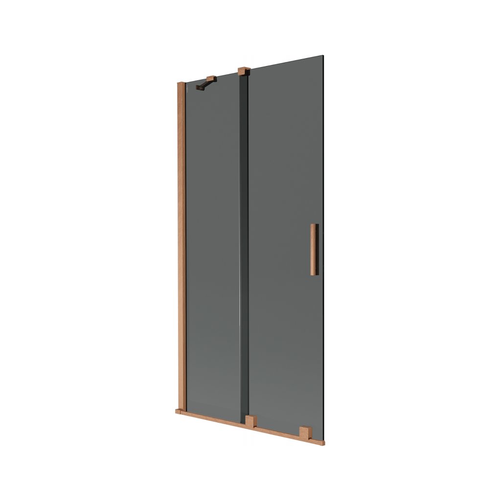 Mexen Velar, 2-křídlová posuvná vanová zástěna 95 x 150 cm, 8mm šedé sklo, měděná matná, 896-095-000-41-65
