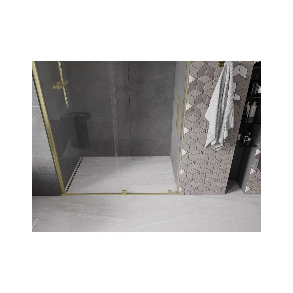 Mexen Velar, posuvné dveře do otvoru 150x200 cm, 8mm čiré sklo, zlatá matná, 871-150-000-01-55