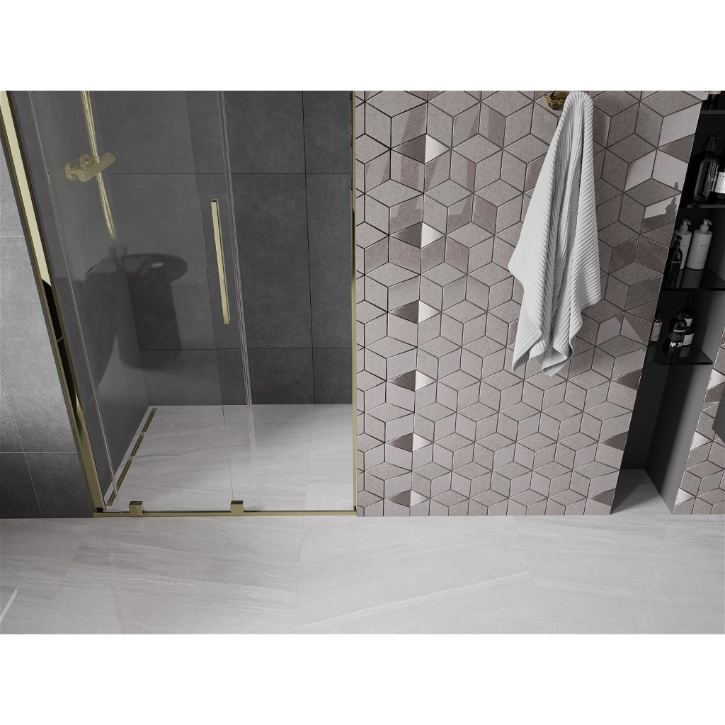 Mexen Velar, posuvné dveře do otvoru 80x200 cm, 8mm čiré sklo, zlatá lesklá, 871-080-000-01-50