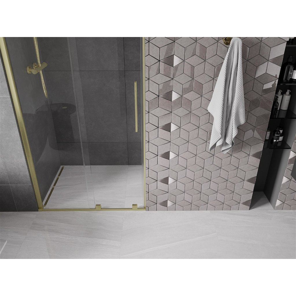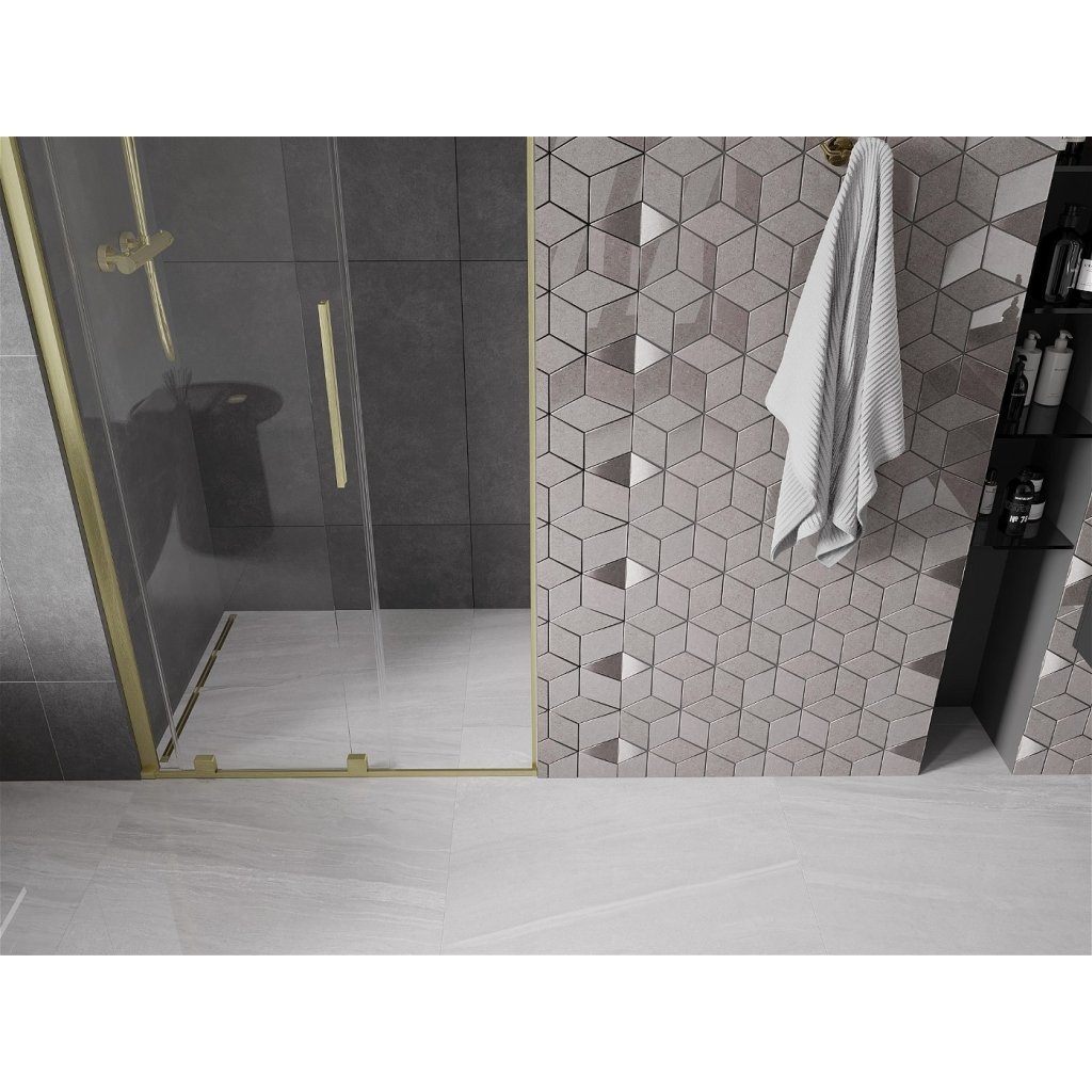 Mexen Velar, posuvné dveře do otvoru 85x200 cm, 8mm čiré sklo, zlatá matná, 871-085-000-01-55