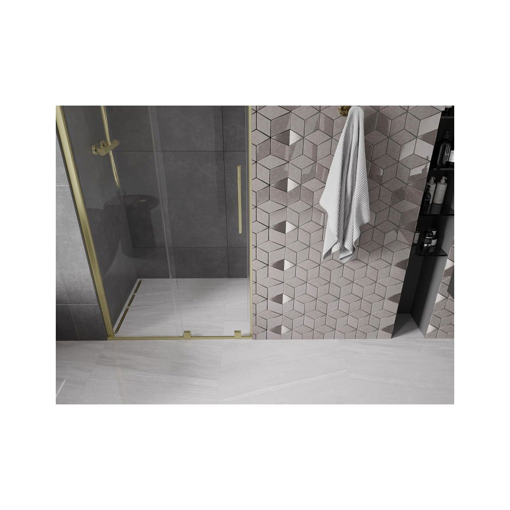 Mexen Velar, posuvné dveře do otvoru 90x200 cm, 8mm čiré sklo, zlatá matná, 871-090-000-01-55