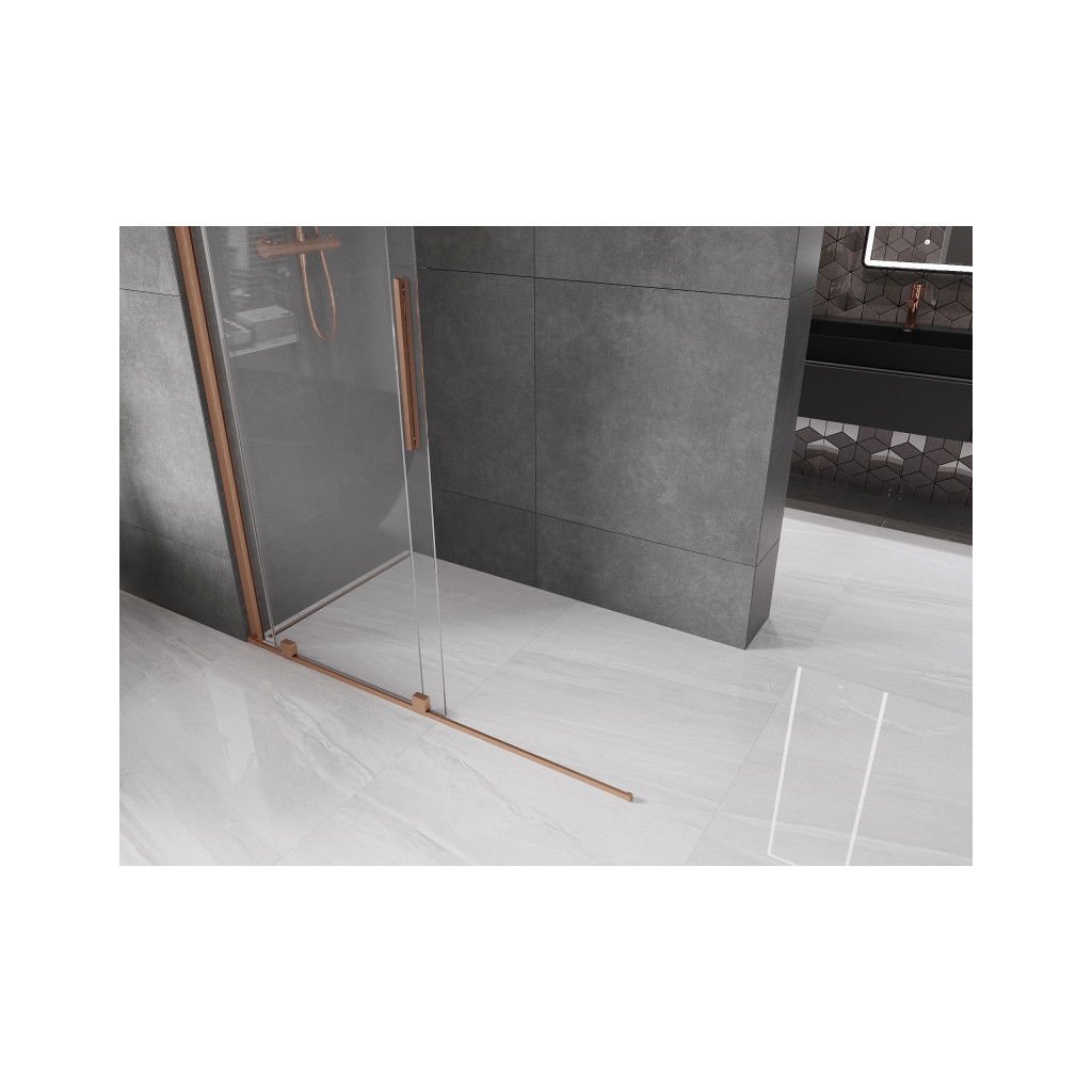 Mexen Velar, posuvné dveře do otvoru typ Walk-In 130 cm, 8mm čiré sklo, měděná matná, 871-130-000-03-65