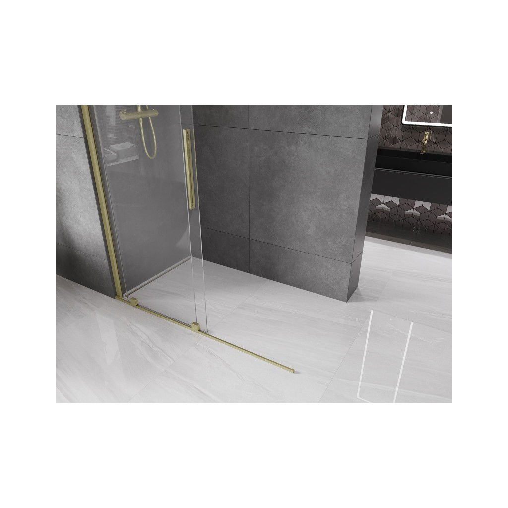 Mexen Velar, posuvné dveře do otvoru typ Walk-In 130 cm, 8mm čiré sklo, zlatá matná, 871-130-000-03-55
