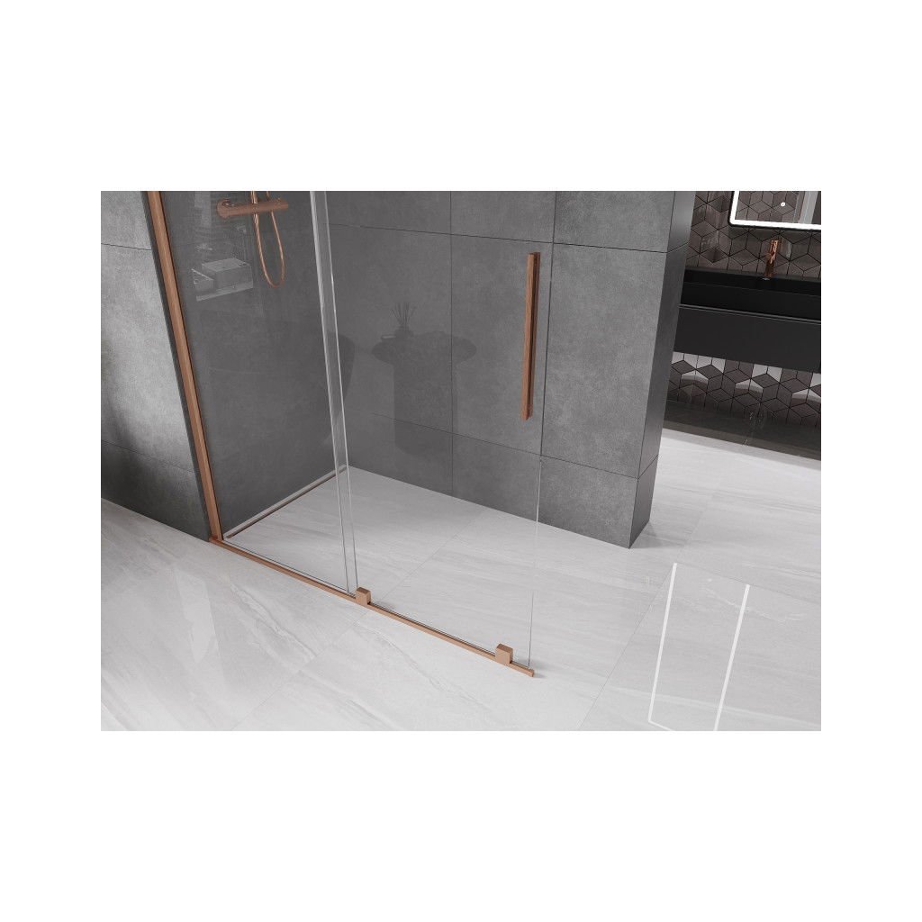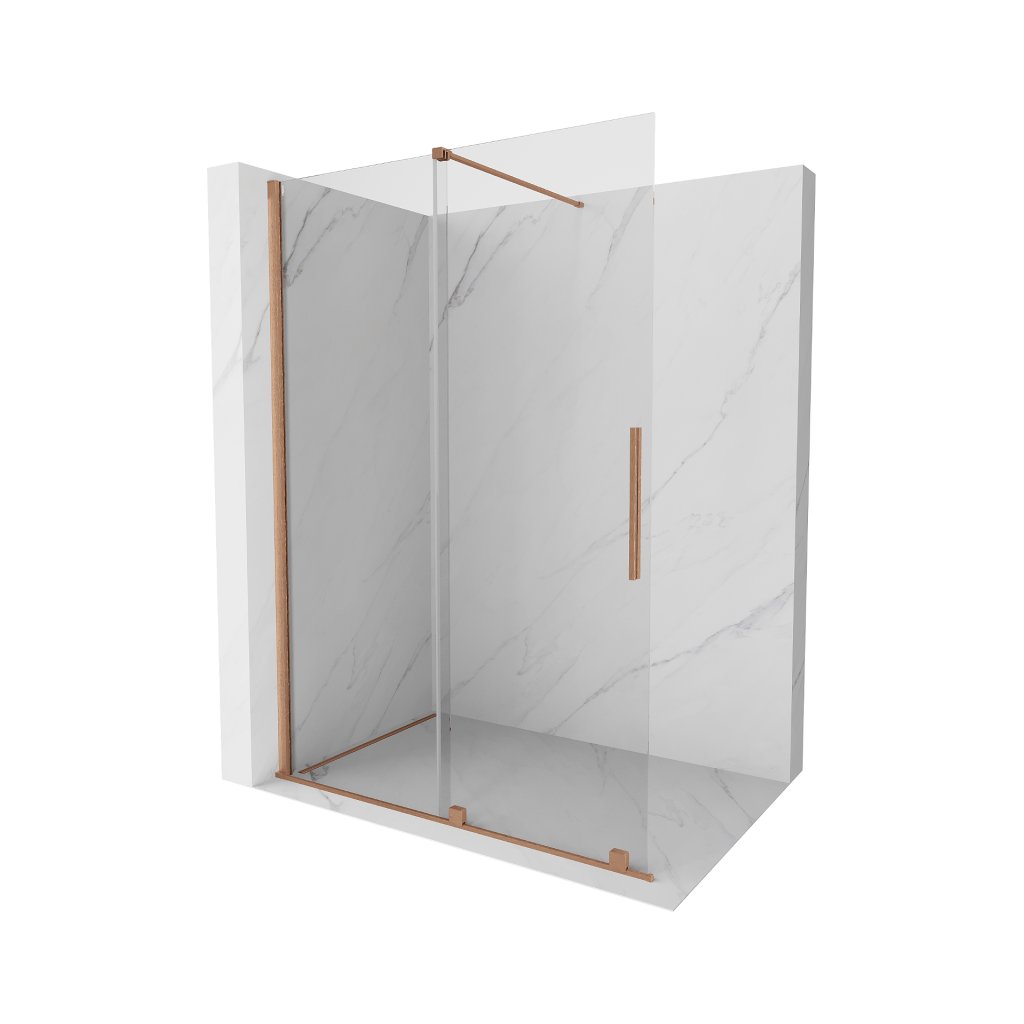 Mexen Velar, posuvné dveře do otvoru typ Walk-In 140 cm, 8mm čiré sklo, měděná matná, 871-140-000-03-65