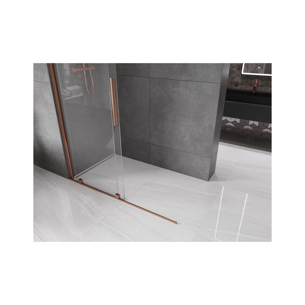Mexen Velar, posuvné dveře do otvoru typ Walk-In 140 cm, 8mm čiré sklo, růžové zlato, 871-140-000-03-60