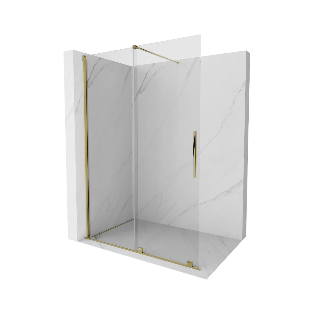 Mexen Velar, posuvné dveře do otvoru typ Walk-In 140 cm, 8mm čiré sklo, zlatá lesklá, 871-140-000-03-50