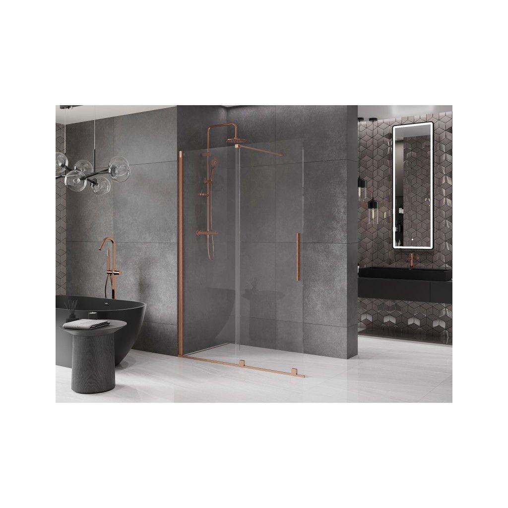 Mexen Velar, posuvné dveře do otvoru typ Walk-In 150 cm, 8mm čiré sklo, měděná matná, 871-150-000-03-65