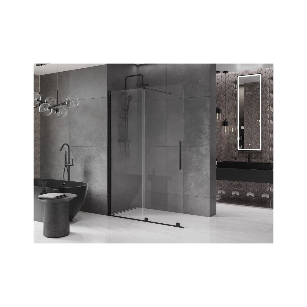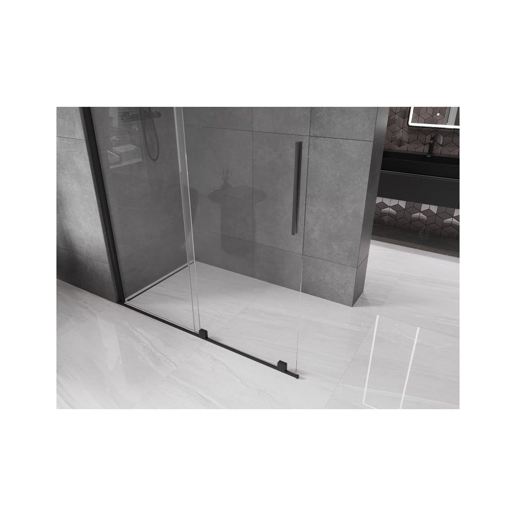 Mexen Velar, posuvné dveře do otvoru typ Walk-In 160 cm, 8mm čiré sklo, černá matná, 871-160-000-03-70
