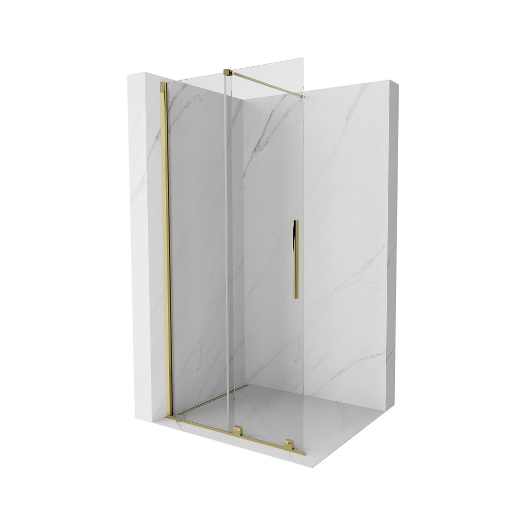 Mexen Velar, posuvné dveře do otvoru typ Walk-In 90 cm, 8mm čiré sklo, zlatá lesklá, 871-090-000-03-50