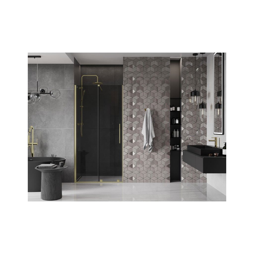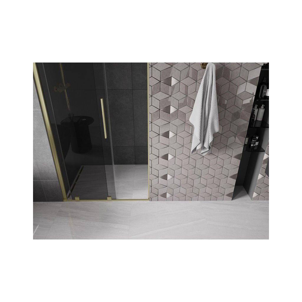 Mexen Velar, posuvné sprchové dveře do otvoru 100 cm, 8mm šedé sklo, zlatá matná, 871-100-000-41-55