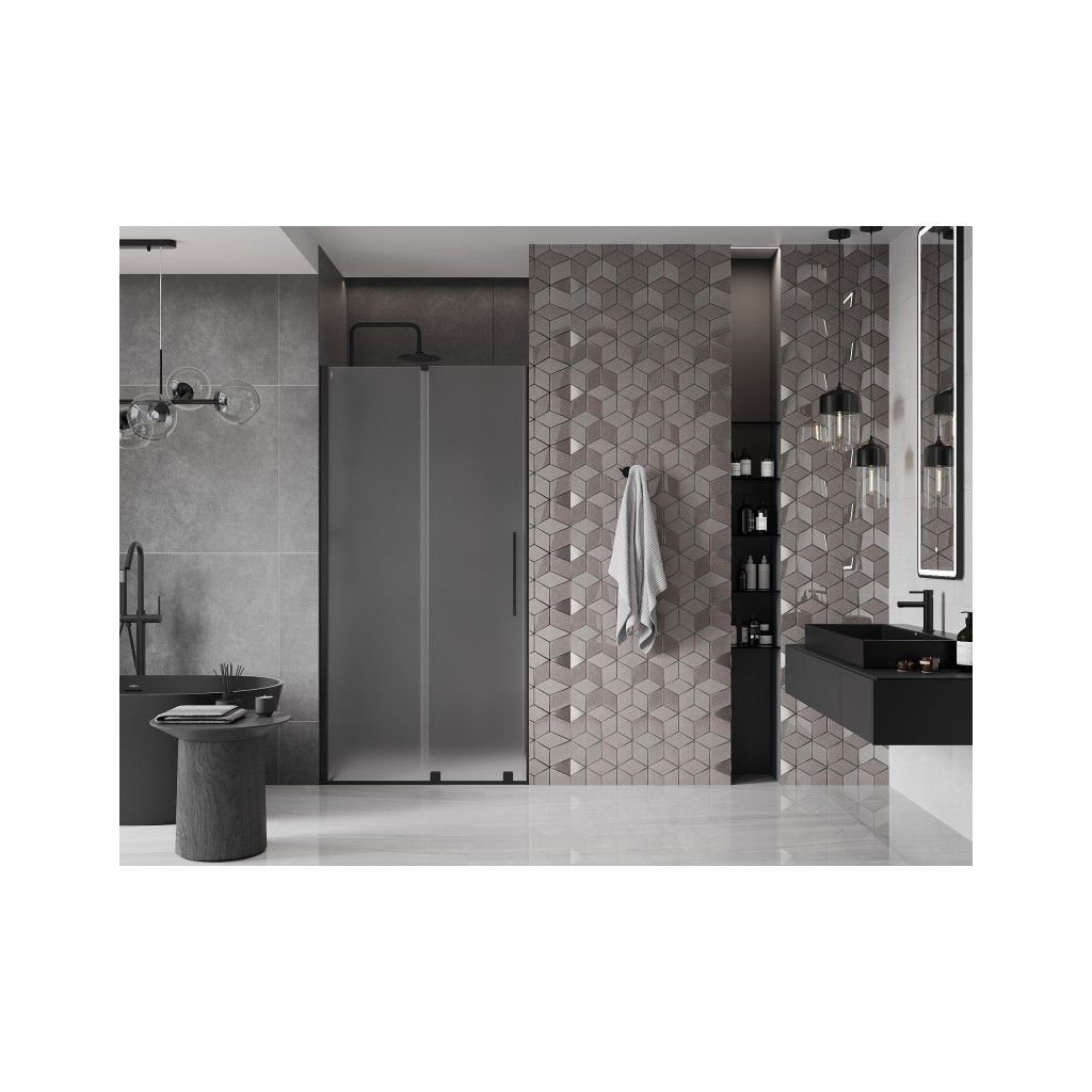Mexen Velar, posuvné sprchové dveře do otvoru 100 cm, 8mm sklo námraza, černá matná, 871-100-000-31-70
