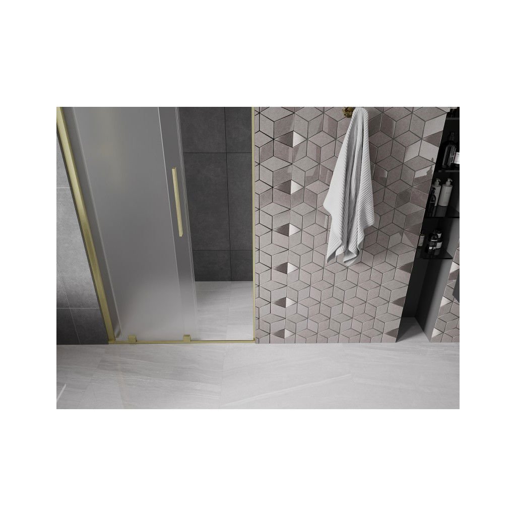 Mexen Velar, posuvné sprchové dveře do otvoru 110 cm, 8mm sklo námraza, zlatá matná, 871-110-000-31-55