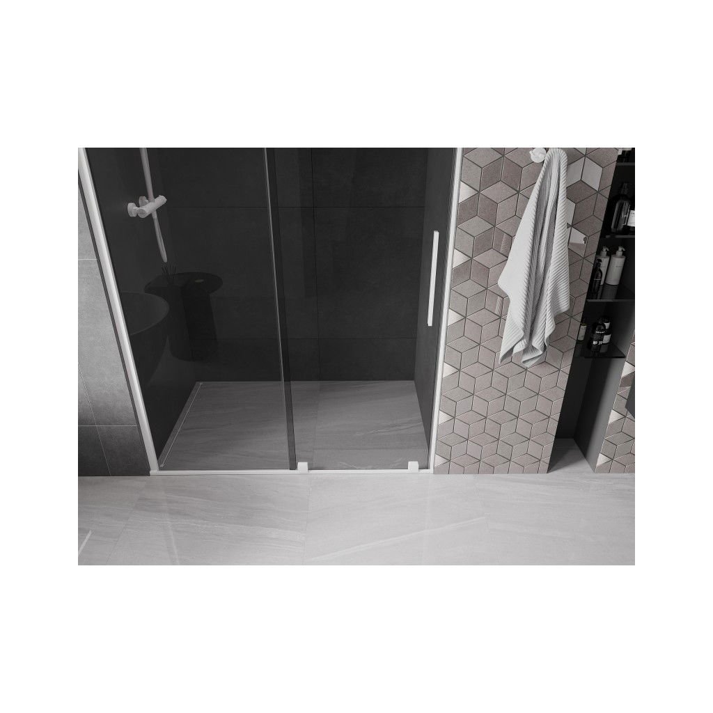 Mexen Velar, posuvné sprchové dveře do otvoru 130 cm, 8mm šedé sklo, bílá matná, 871-130-000-41-20