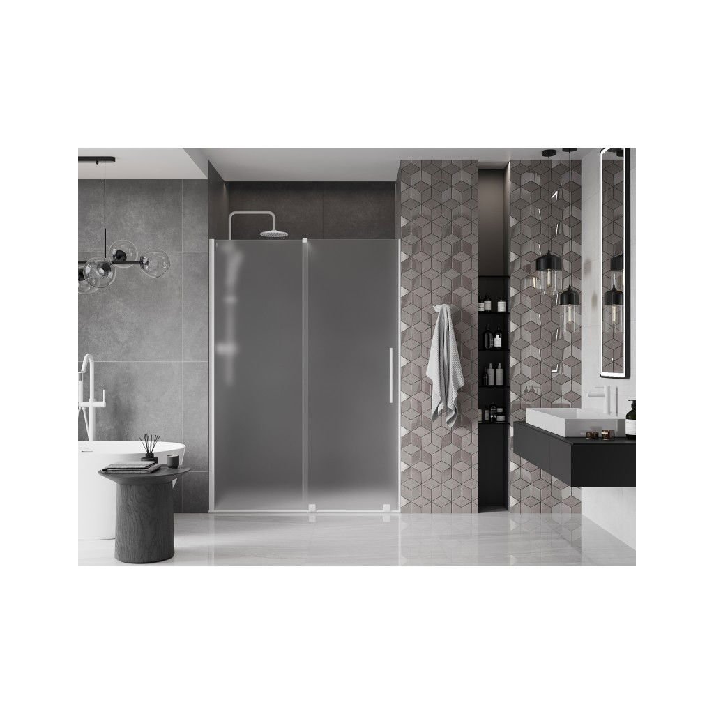Mexen Velar, posuvné sprchové dveře do otvoru 140 cm, 8mm sklo námraza, bílá matná, 871-140-000-31-20