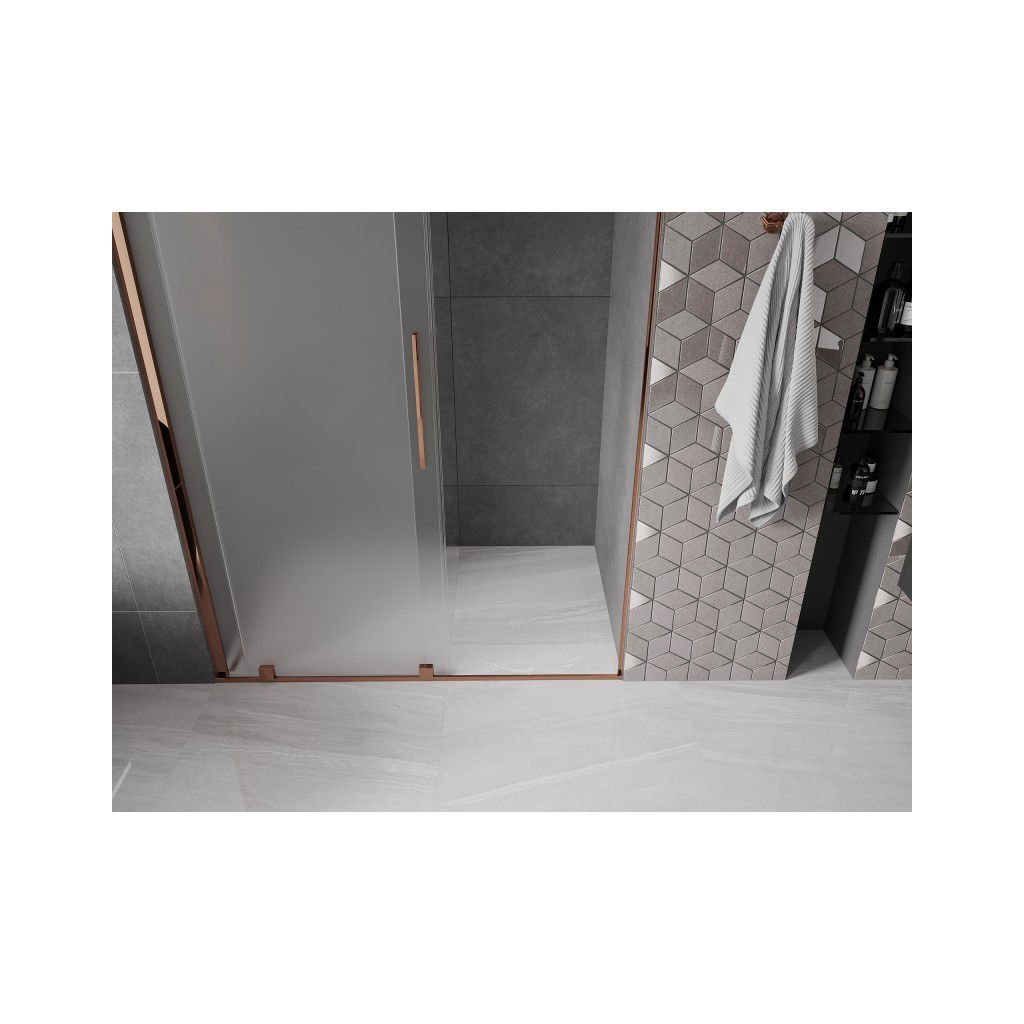 Mexen Velar, posuvné sprchové dveře do otvoru 150 cm, 8mm sklo námraza, růžové zlato, 871-150-000-31-60