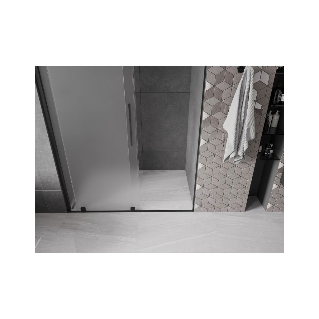 Mexen Velar, posuvné sprchové dveře do otvoru 160 cm, 8mm sklo námraza, černá matná, 871-160-000-31-70