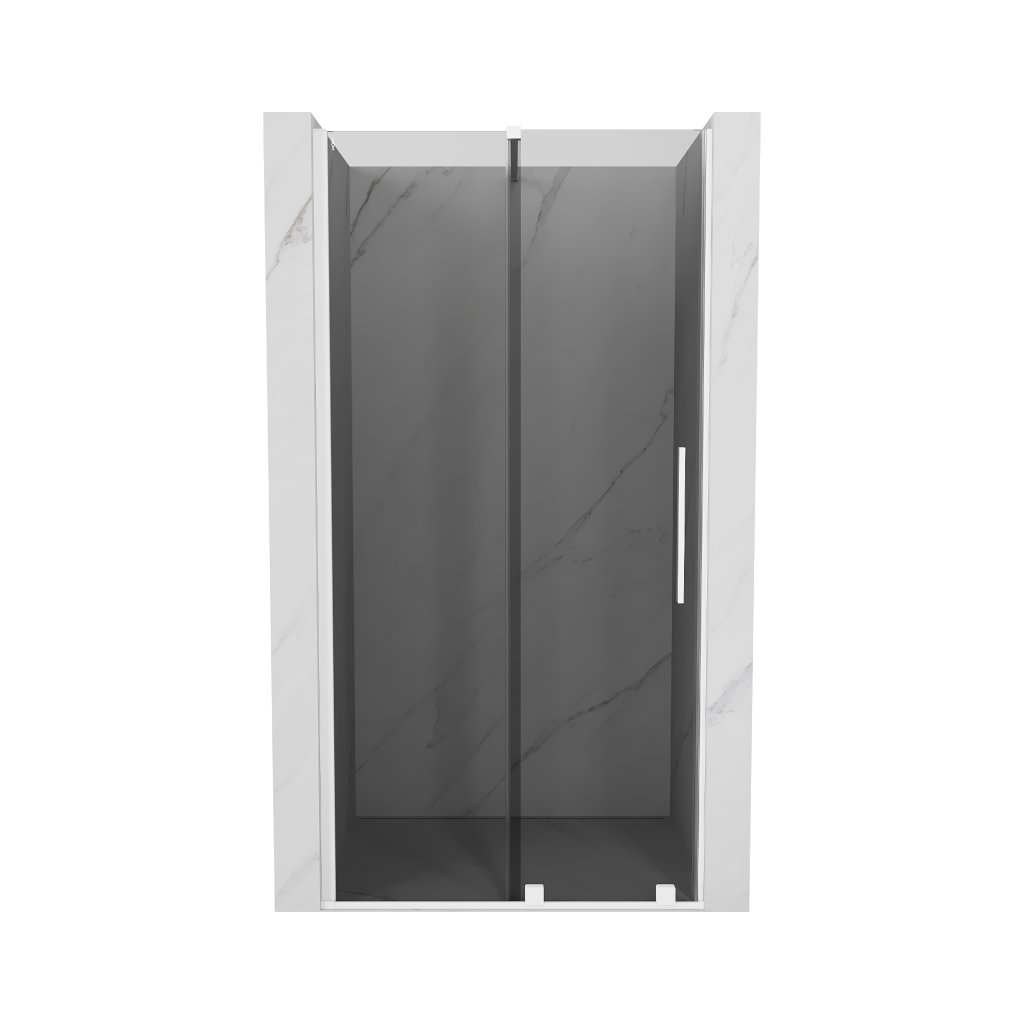 Mexen Velar, posuvné sprchové dveře do otvoru 90 cm, 8mm šedé sklo, bílá matná, 871-090-000-41-20