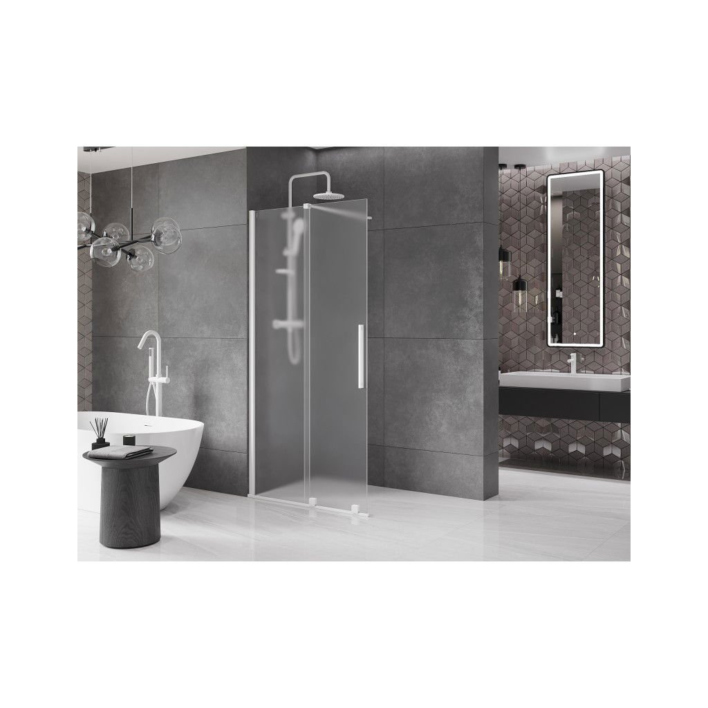Mexen Velar, sprchová zástěna s posuvnými dveřmi Walk-in 100 x 200 cm, 8mm sklo námraza, bílá matná, 871-100-000-33-20