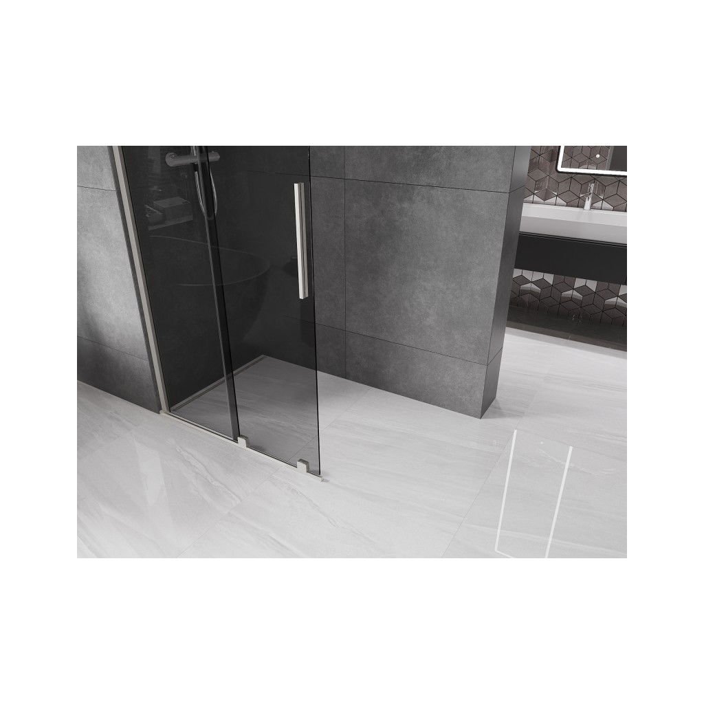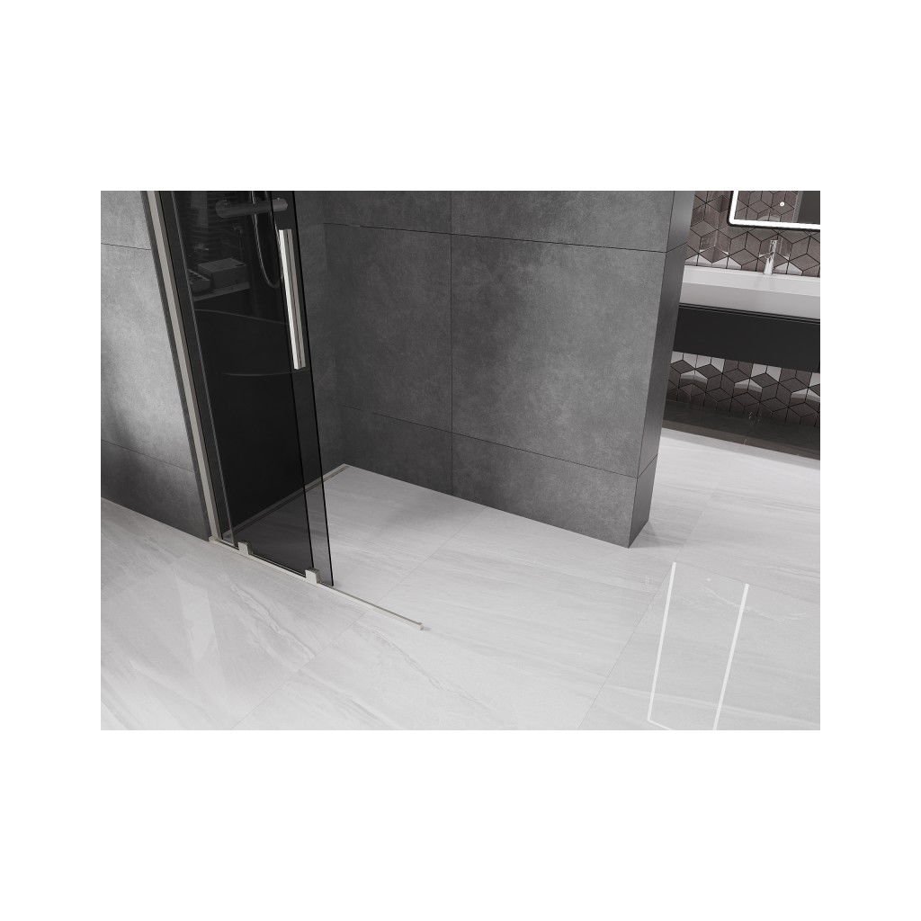 Mexen Velar, sprchová zástěna s posuvnými dveřmi Walk-in 110 x 200 cm, 8mm šedé sklo, broušená ocel, 871-110-000-43-97