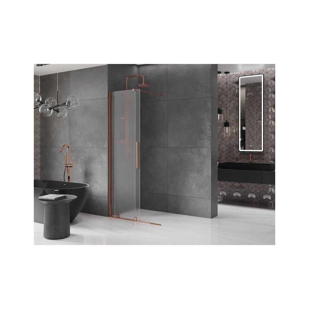 Mexen Velar, sprchová zástěna s posuvnými dveřmi Walk-in 110 x 200 cm, 8mm sklo námraza, růžové zlato, 871-110-000-33-60