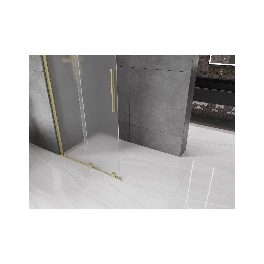 Mexen Velar, sprchová zástěna s posuvnými dveřmi Walk-in 120 x 200 cm, 8mm sklo námraza, zlatá matná, 871-120-000-33-55