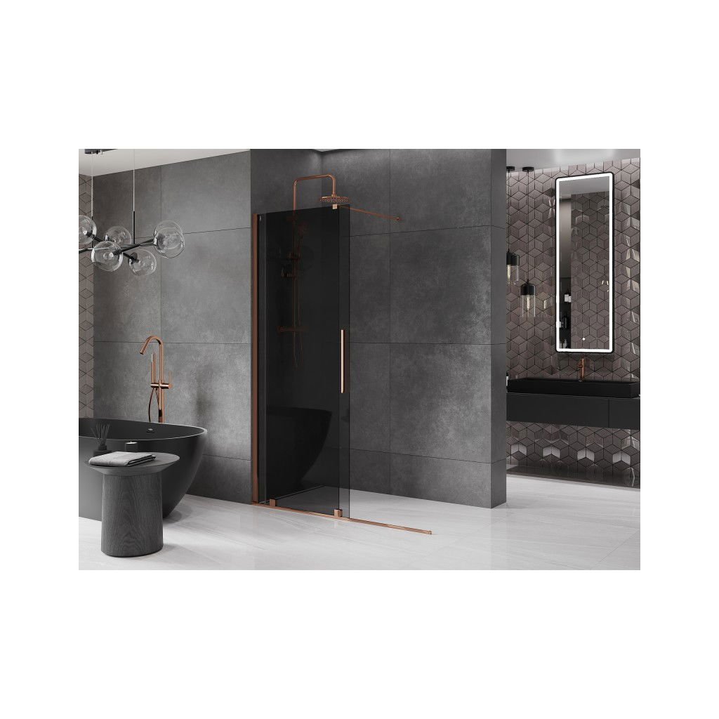 Mexen Velar, sprchová zástěna s posuvnými dveřmi Walk-in 130 x 200 cm, 8mm šedé sklo, růžové zlato, 871-130-000-43-60
